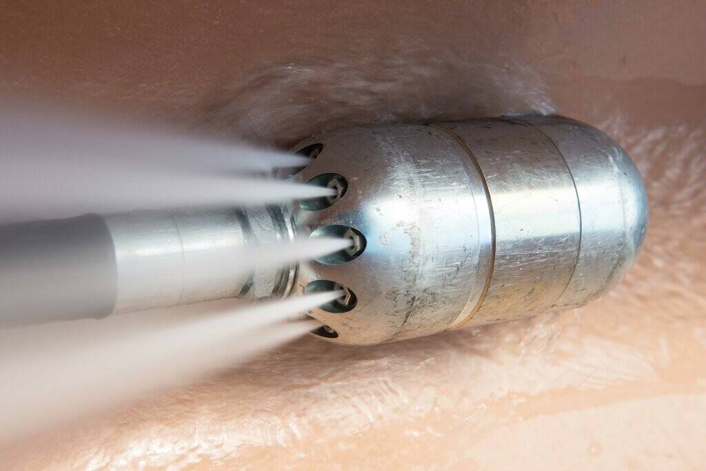 - Процесс гидродинамической очистки труб Гидродинамическая очистка труб включает в себя использование струи воды под высоким давлением для удаления любого мусора или наростов внутри труб. Давление воды обычно составляет от 1500 до 4000 фунтов на квадратный дюйм, в зависимости от серьезности закупорки. Затем вода направляется в трубу через специальное сопло, которое можно регулировать для создания различных форм распыления и углов.
